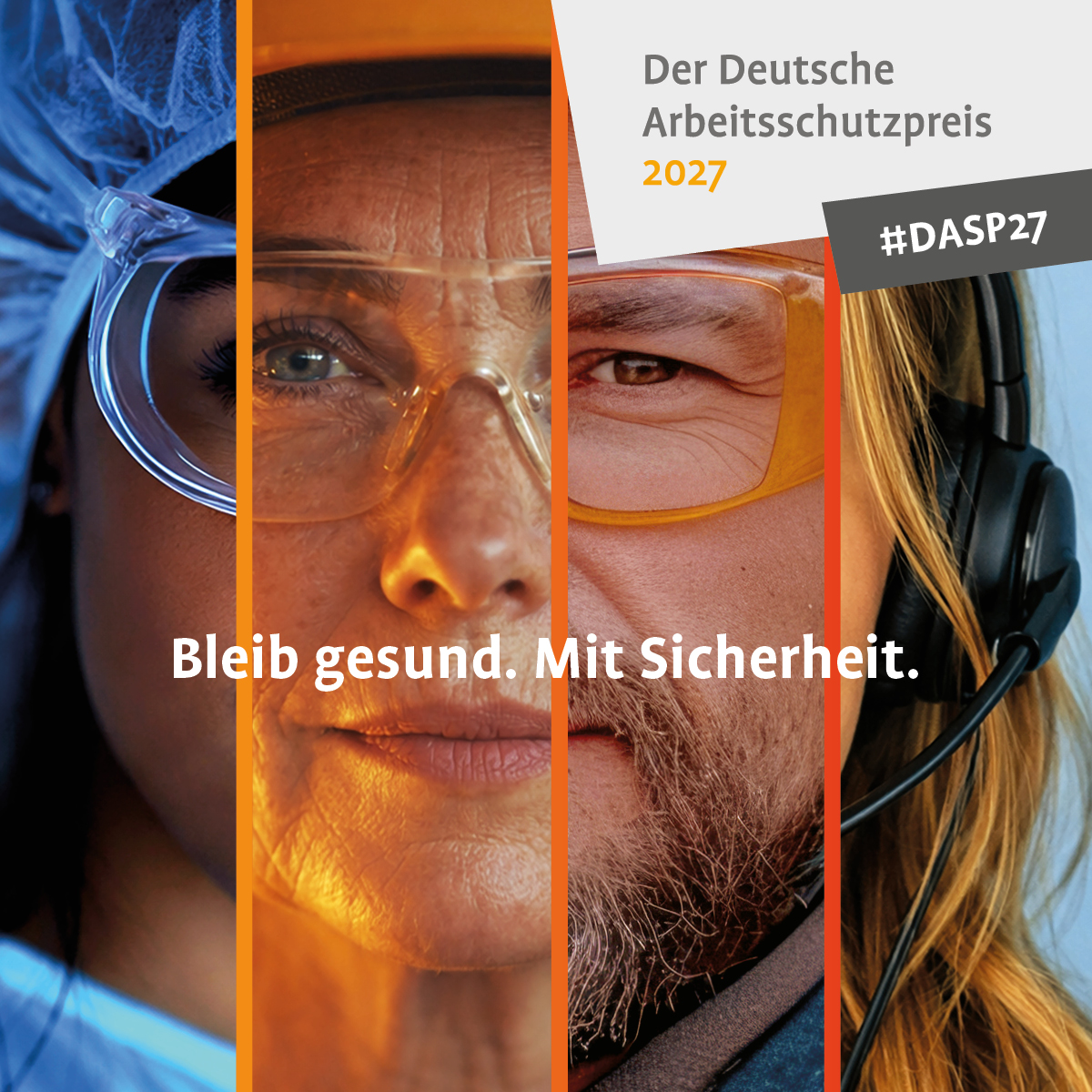 Keyvisual DASP 2027 quadratisch (Quelle: DASP/3c) Download Bild: Keyvisual des Deutschen Arbeitsschutzpreises 2027 in quadratischer Form mit Claim und Hashtag -