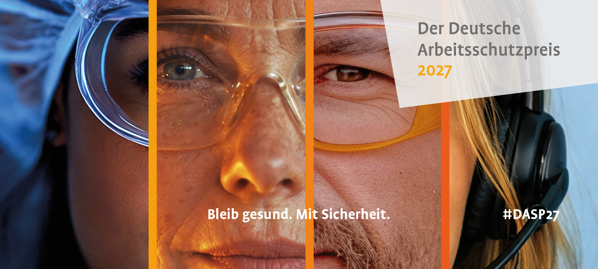Keyvisual DASP 2027 rechteckig (Quelle: DASP/3c) Download Bild: Keyvisual des Deutschen Arbeitsschutzpreises 2027 in rechteckiger Form mit Claim und Hashtag -